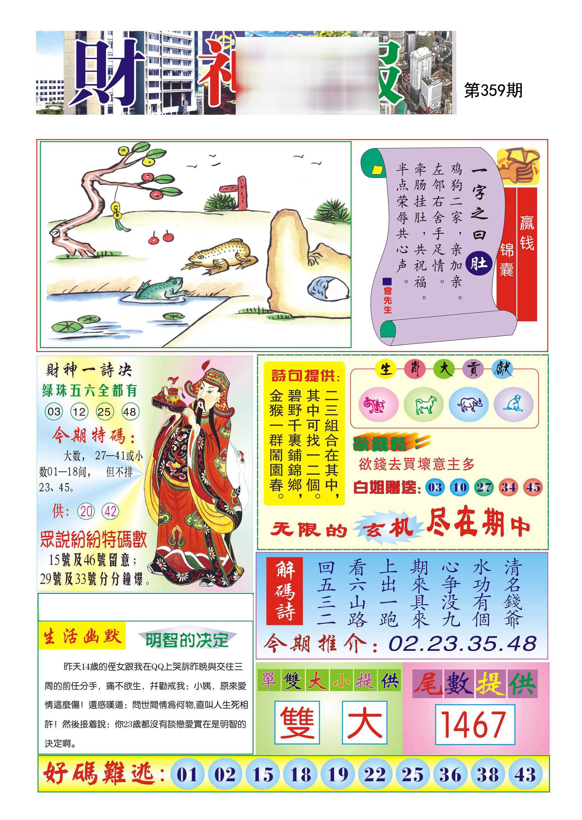 359期:平特5不中【35 02 19 32 03】