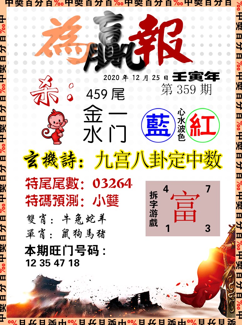 347期:绝杀三尾【5 3 2】开:羊35 |