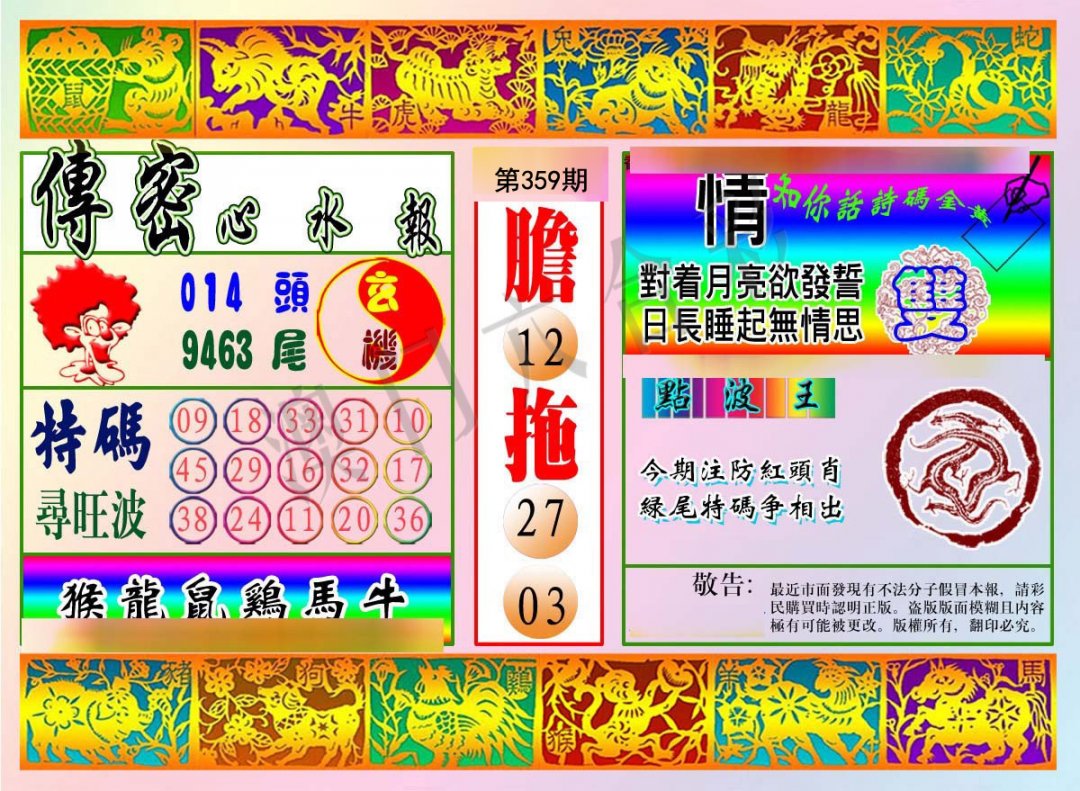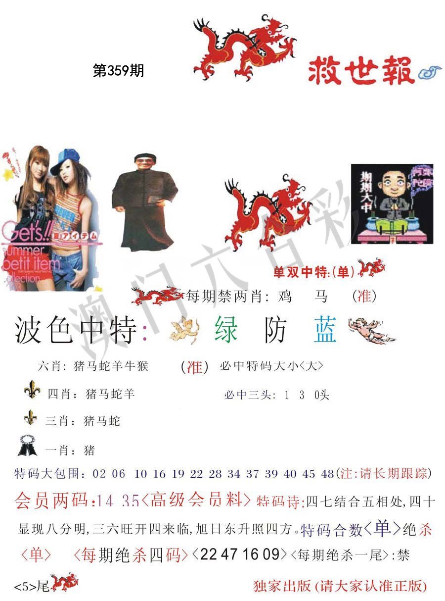 359期:复式连肖【马狗羊鸡龙虎】 |