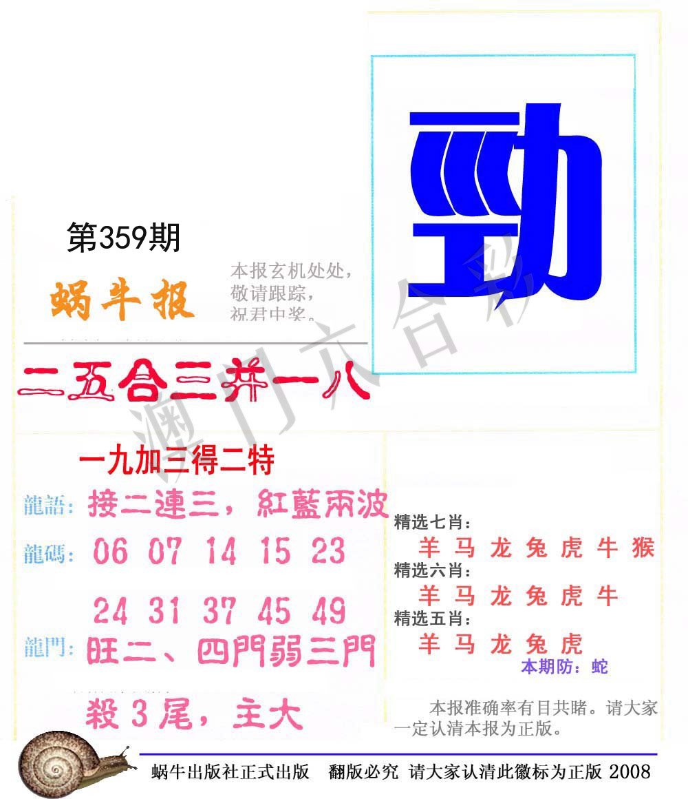 348期:绝杀三尾【4 0 1】开:蛇37 |