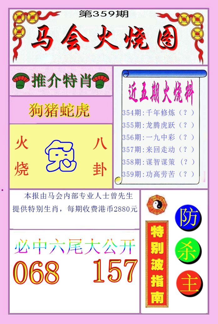 349期:绝杀三尾【9 3 1】开:猪07 |