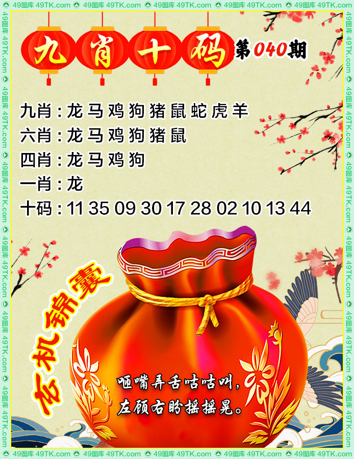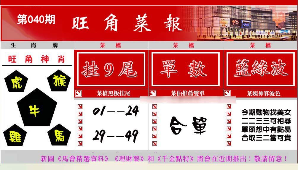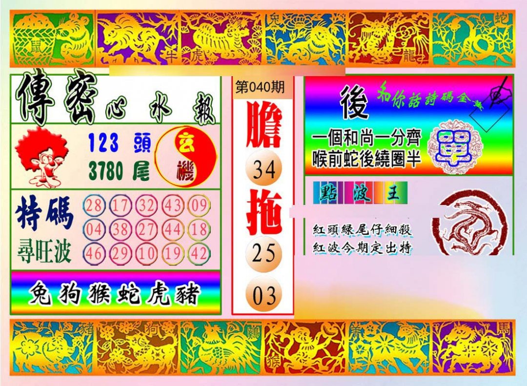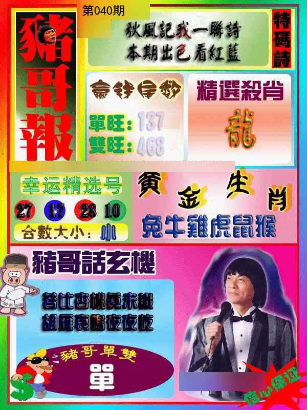 040期:复式连肖【马兔猪龙羊鸡】 |