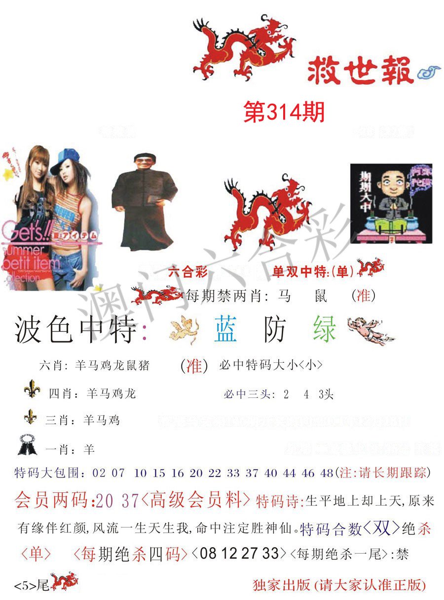 309期绝杀中特【羊肖-2头-6尾-双数】开马36 |