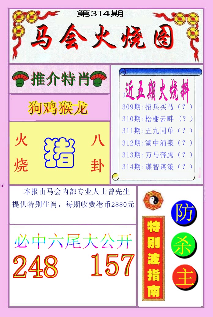 302期:绝杀三尾【0 6 8】开:虎40 |