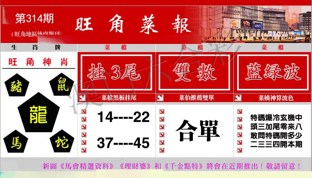 314期:复式连肖【鼠牛猴狗虎鸡】 |